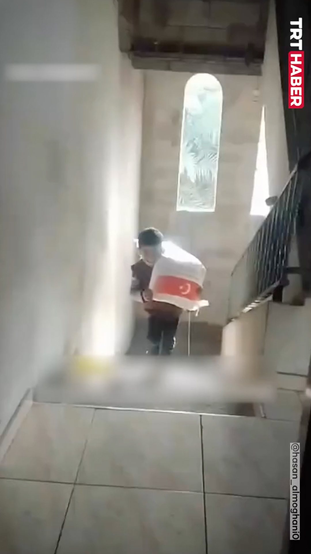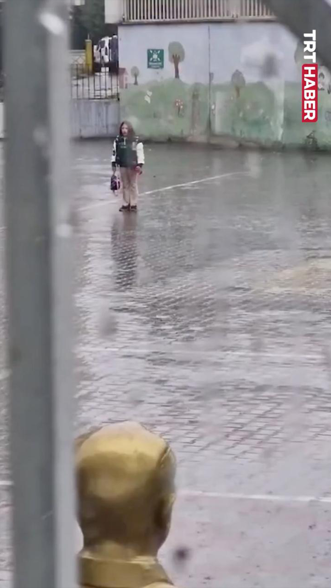 Iğdır'da sınıfına koşan bir öğrenci, İstiklal Marşı'nı duyunca yağışa rağmen durup tek başına eşlik etti.